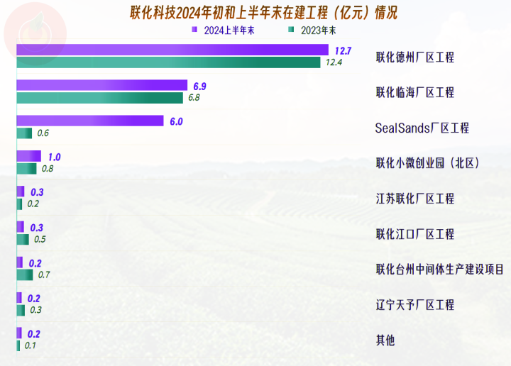最大的三个在建项目是德州、临海和Seal Sands厂区的建设,从德州和临海厂区的建设内容看,装置很多,规模相当大,而位于英国的Seal Sands(蒂赛德)的厂区建设的未来效益情况也有很大的不确定性。还没有看到其在马来西亚项目的投入情况,估计后续会看到。