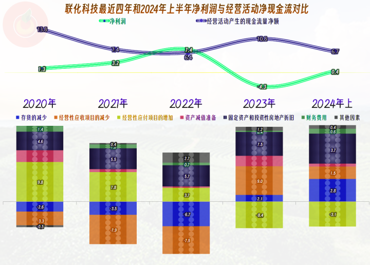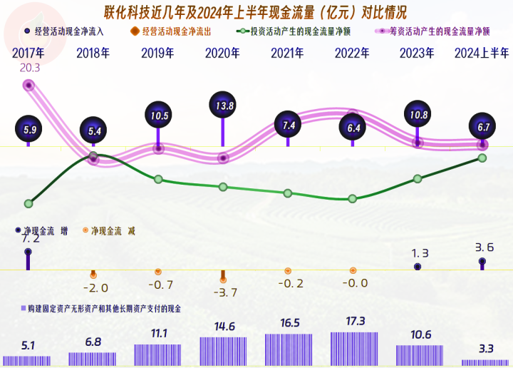 “经营活动的净现金流”表现比较正常,业绩最好那两年反而要差一些。由于其从2019年就在固定资产类的投资规模上比较大,正好赶上了2021年和2022年的行业大繁荣;但继续大规模投资,却取得了相反的效果,为此,不得不在2024年上半年,把投资的规模适当控制下来,至少是在节奏上控制下来。