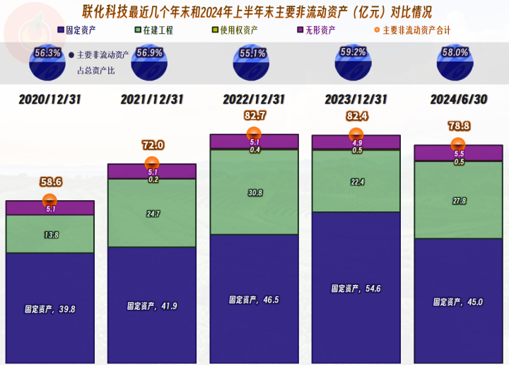 从2021年末开始,联化科技不仅固定资产在大幅增长,在建工程的规模也很大;2024年上半年末的固定资产规模大幅下降,但下降的“在建工程”规模又开始增长了。