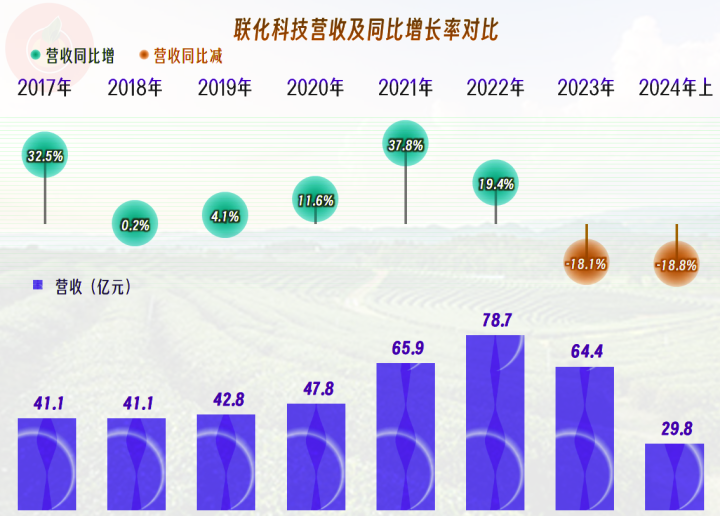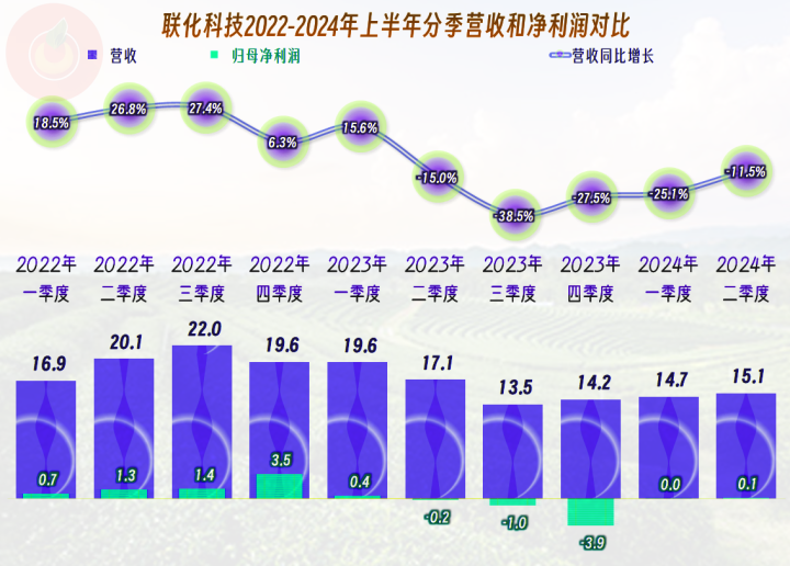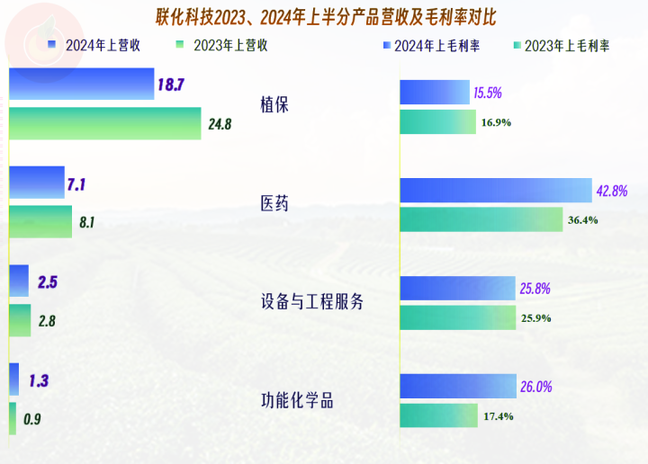 2024年上半年,联化科技的营收同比下跌了18.8%,这和2023年的下跌幅度差不多,最近这一年多的表现,和大多数同行接近。