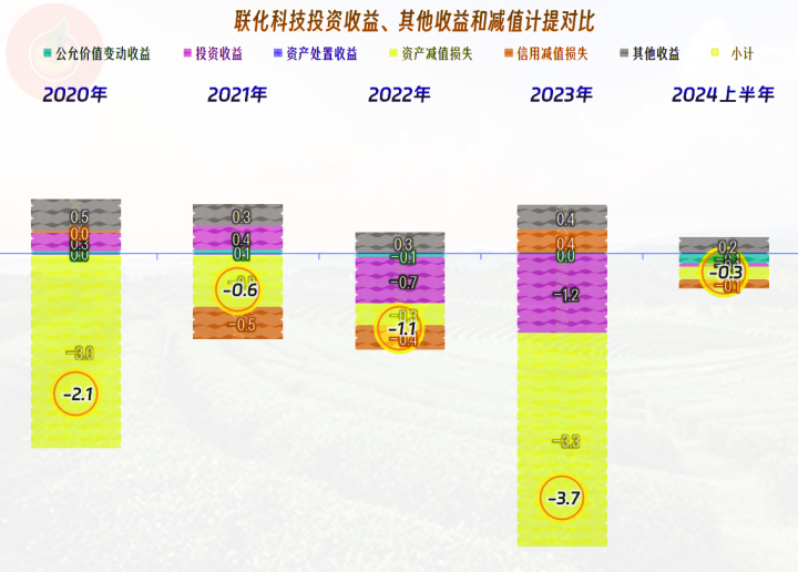 最近四年半,每期都有其他方面的净损失,毛利率下跌时“资产减值损失”比较高,我们是理解的;由于境外收入的占比较高,“信用减值损失”方面并不严重。投资收益方面这是什么情况呢?2023年主要是“处置以公允价值计量且其变动计入当期损益的金融资产取得的投资收益”,这一般就是炒股、炒汇和金融衍生品之类的情况,考虑到联化科技境外销售规模较大,会不会是“套期保值”方面的损失呢?并不是,因为他们已经明确说了是除套期保值外的损失。