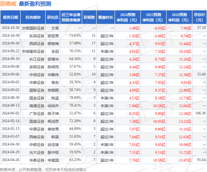 证券之星数据中心根据近三年发布的研报数据计算,国金证券姚遥研究员团队对该股研究较为深入,近三年预测准确度均值为78.6%,其预测2024年度归属净利润为盈利4.53亿,根据现价换算的预测PE为26.92。