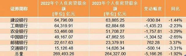 个人住房贷款余额则出现了过去26年以来的首次负增长,比上年末减少6300亿,同比下降1.6%,其中6大行(5166亿)占了将近七成,缩水规模占比高达82%。