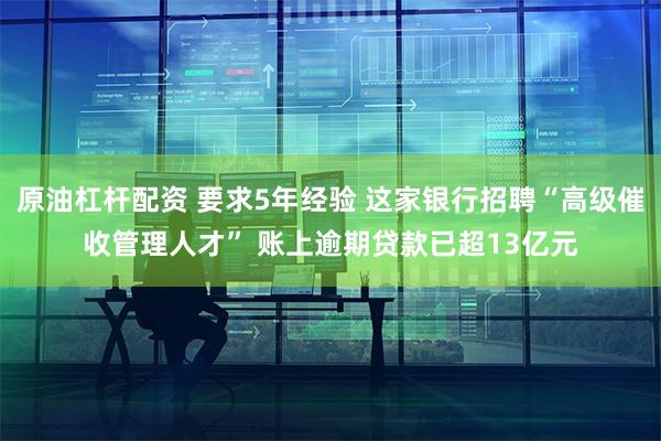 原油杠杆配资 要求5年经验 这家银行招聘“高级催收管理人才” 账上逾期贷款已超13亿元