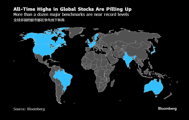 上一期文章我们探讨了贵金属最近集体狂飙,而同时创下记录新高的还有以美股为首的全球股票市场。据彭博数据,在全球最大的20个股市中,有14个最近创下历史新高。即将到来的降息、健康的经济和企业盈利推动了这一行情。