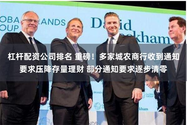 杠杆配资公司排名 重磅!多家城农商行收到通知要求压降存量理财 部分通知要求逐步清零