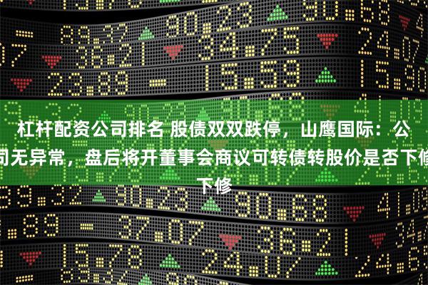 杠杆配资公司排名 股债双双跌停,山鹰国际:公司无异常,盘后将开董事会商议可转债转股价是否下修