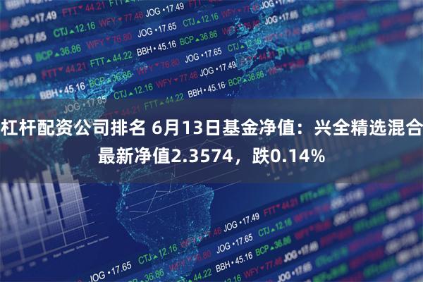 杠杆配资公司排名 6月13日基金净值:兴全精选混合最新净值2.3574,跌0.14%